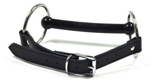 Latex-Beißknebel schwarz Leder. Beißknebel aus Latex.Striemenbreite ca. 2,2cm. Das Mundstück ist ca.16cm breit. Der Umfang lässt sich von ca. 26-50cm verstellen. Die seitlichen Ringe haben einen Durchmesser von ca. 7cm. Die Striemen sind aus Leder.