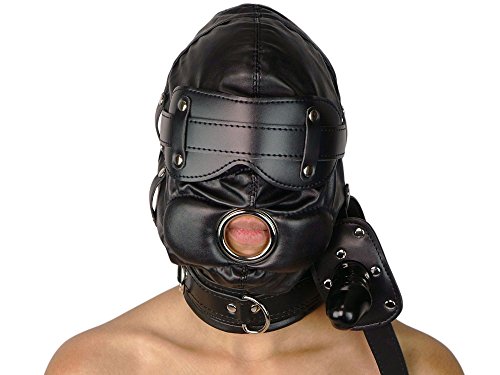 Dicke stabile Vollkopfmaske für 100%ige Sklavenkontrolle. Diese Maske ist optimal wenn Sie mit ihr Dominanz und Demütigung ausleben wollen. Die Maske mit abnehmbarer Augenklappe und Dildo-Knebel lässt Sie entscheiden was ihre/r Partner/in sehen und in den Mund nehmen darf. Größe: Einheitsgröße Material: 100% Polyester, mit Polyurethan-Beschichtung Farbe: schwarz