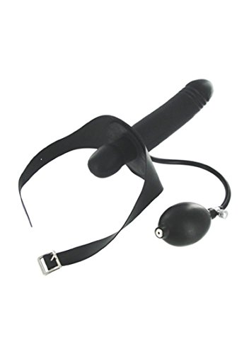 Made to serve two functions at once, this inflatable gag with dildo will surely make things interesting. The inside part functions as a mouth gag that once securely put on, can be inflated. After the gag is put on, and inflate if desired, the other partner can then use the outside dildo for penetration. The partner that is gagged will get an up close view of the action as the dildo goes in and out.