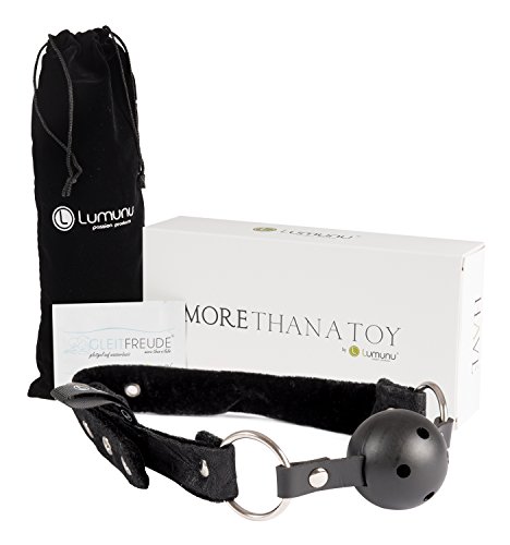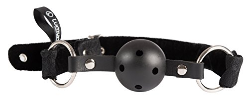 Deluxe Mundknebel Zuchtkugel, by Lumunu passion products Jetzt kehrt Zucht und Ordnung ein – denn Widerworte gibt es mit diesem Knebel garantiert keine mehr. Unsere Zuchtkugel bringt jeden aufmüpfigen Sub zum Schweigen. Was bleibt, ist ein stiller Genuss und der kann sehr intensiv werden: Einfach in der Rolle aufgehen, fallen lassen, führen lassen. Für aufregend dominant-devote Spiele lässt sich dieser Knebel ganz einfach anlegen. Einmal „ah“ sagen lassen und das edle Spitzenband am Hinterkopf mit dem Schnallenverschluss schließen. Durch den mehrfach in Stufen verstellbaren Verschluss passt sich der Knebel jeder Kopfgröße an. Der Kugelknebel aus stabilem Kunststoff hat einen Durchmesser von 4 cm und lässt dank seiner Löcher immer genug Luft durch. So ermöglicht er auch dann eine freie Atmung, wenn er sehr straff sitzt. Gehalten wird die Kugel von einem genieteten Band aus Lederimitat, das über stabile Metallringe mit dem soften Kopfband verbunden ist. Dieses Band aus weichem Satin mit edlem Spitzenüberzug in Kontrastfarbe ist weich gepolstert und garantiert so einen hervorragenden Tragekomfort auch bei längeren Einsätzen. Gleichzeitig besticht die Kombination mit einer eleganten Optik, die gut zu Dienstmädchenspielen und anderen Rollenspielen passt. Muss unsere Zuchtkugel mal in die Wäsche, empfehlen wir eine Handwäsche mit lauwarmem Wasser und einer milden Seife oder Shampoo. Das Stoffband sollte komplett getrocknet sein, bevor die Zuchtkugel brav bis zu ihrem nächsten Einsatz in der Schublade verschwindet. Andernfalls können die Metallbeschläge rosten. Inklusive Luxus- Samtaufbewahrungsbeutel & Aqua- Gleitgel Gleitfreude (5 ml) Produktdaten: Länge ca. 65 cm, Durchmesser Kugel Ø ca. 4 cm, Gewicht ca. 68 g