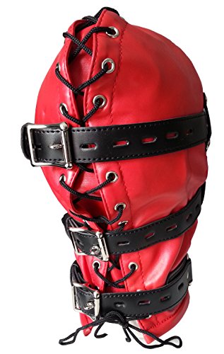Hammerteil in rot und schwarz. Aus hochwertigem Kunstleder. Inkl. Schlösser zum verschließen. Knebel und Augenbinde abnehmbar. Hinten mit Schnürung für den optimalen Sitz.